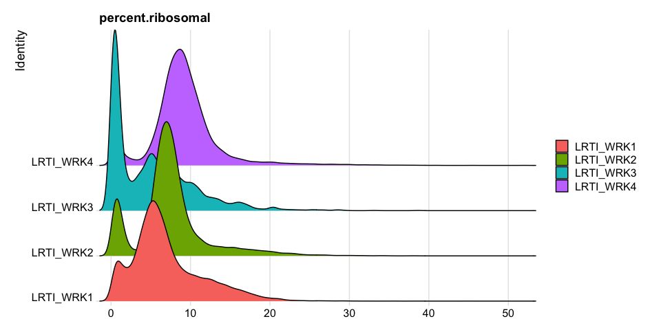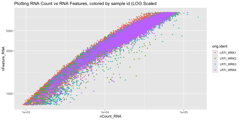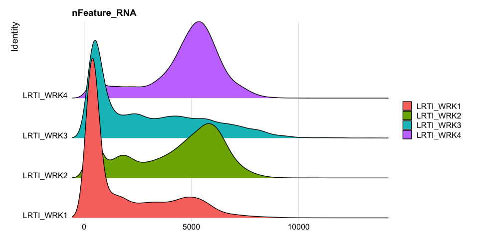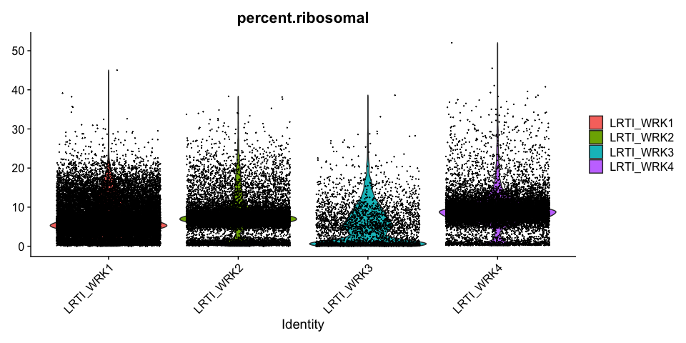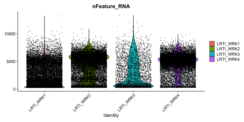 Further, Seurat has a number of convenient built-in functions for visualizing metadata. These functions produce ggplot objects, which can easily be modified using ggplot2. Of course, all of these visualizations can be reproduced with custom code as well, and we will include some examples of both modifying Seurat plots and generating plots from scratch as the analysis continues.