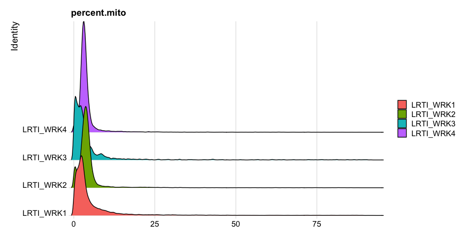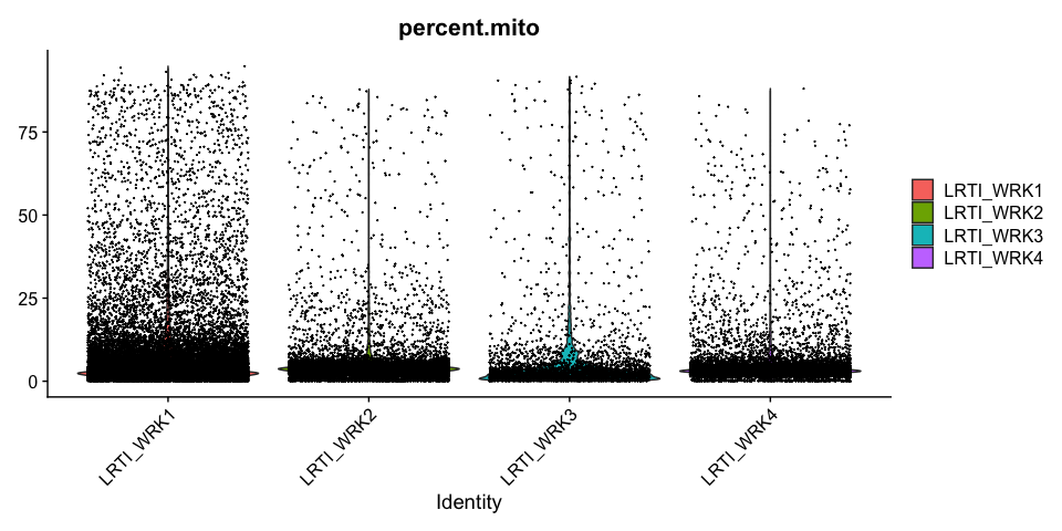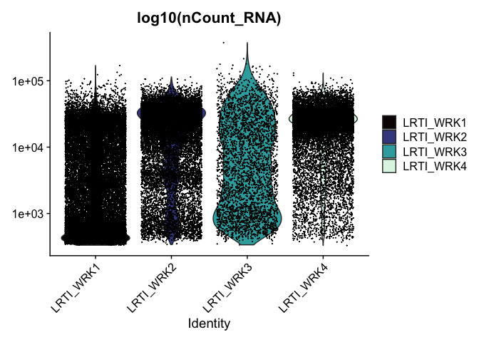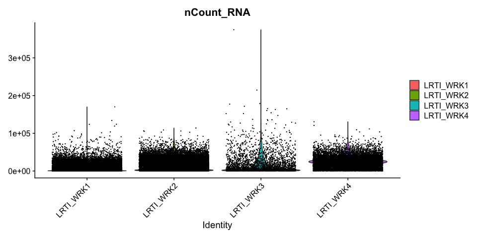 If you are continuing directly from part 1, the experiment.aggregate object is likely already in your workspace. In case you cleared your workspace at the end of the previous section, or are working on this project at a later date after re-starting R, you can use the readRDS function to read your saved Seurat object from part 1.